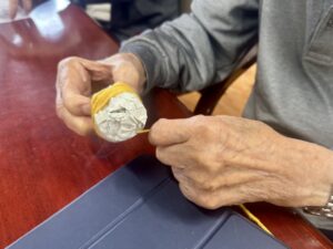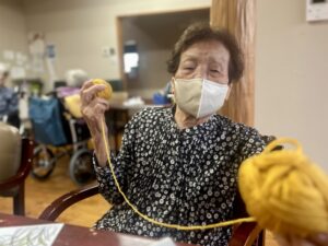 「昔、毛糸の玉こうやって作ったわ~」と懐かしさと一緒に巻かれる毛糸🧶