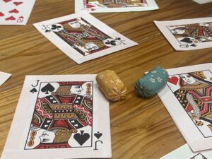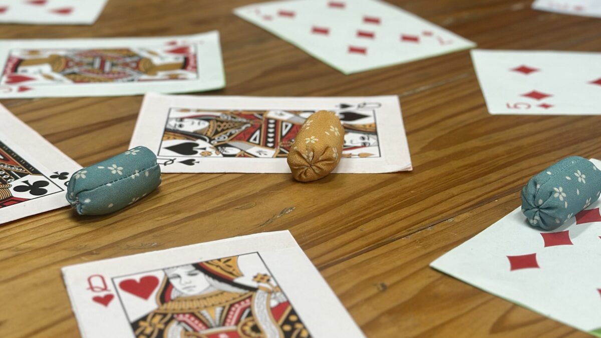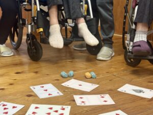 トランプのカードにお手玉を投げて、乗れば得点🎲✨