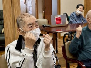 みなさんが体操したり