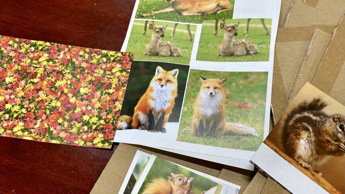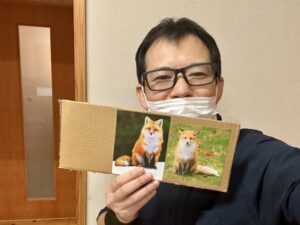 段ボールとプリントしたものを広げて、一人コツコツ作業している男が——