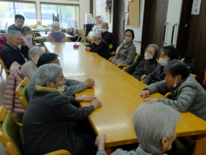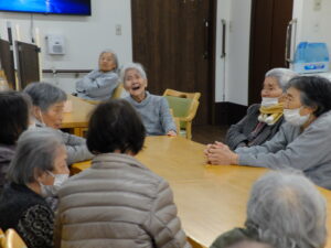 レクリエーションの後、皆様と一緒に楽しく談笑されているご様子です。