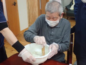 という事で、今日のおやつは皆で牡丹餅を作りました。
