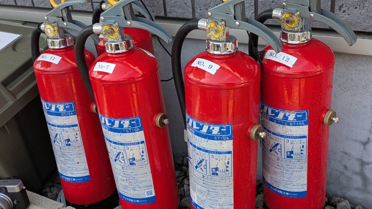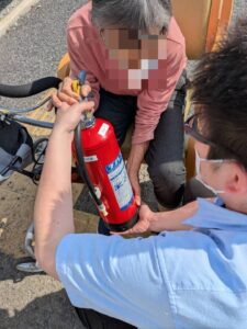 今回は、水消火器を使った消火体験も実施!