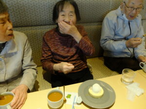 この日も「藤桃庵 桃のしあわせ館」で外食を楽しみ、美味しいお食事やデザートに笑顔が広がり、会話も弾んで楽しいひとときとなりました。