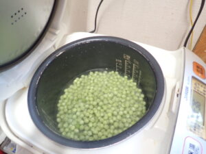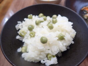 その「えんどう豆」を「豆ごはん」に調理しました('ω')ノ